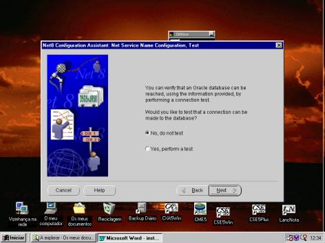 Os passos seguintes consistem em efectuar, ou não, o teste da ligação à base de dados com um utilizador já existente no Oracle (Figura 8) e identificar o Serviço (Figura 9).